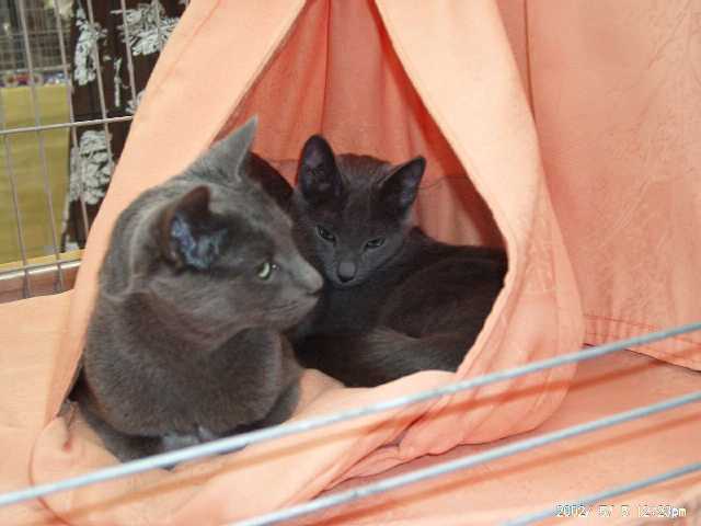 Am 01.11.2002 hat Raissa ihren ersten Wurf problemlos zur Welt gebracht. Fünf kleine Racker, vier Weibchen und ein Männchen. Sie hat sich als instinktsichere, sehr fürsorgliche und liebevolle Mama erwiesen. Es gab auch keine Probleme mit unseren beiden anderen erwachsenen Russen, Akiba und Duschenka. Alle haben ein gutes Zuhause gefunden. Aleksa und Arusha sowie Alyssa und Bloxa eroberten jeweils zu zweit ihr neues Heim in Nittenau und München. Arix zog in die Schweiz um und lebt nun mit einem Katzenmädchen der Rasse Egyptian Mau zusammen.